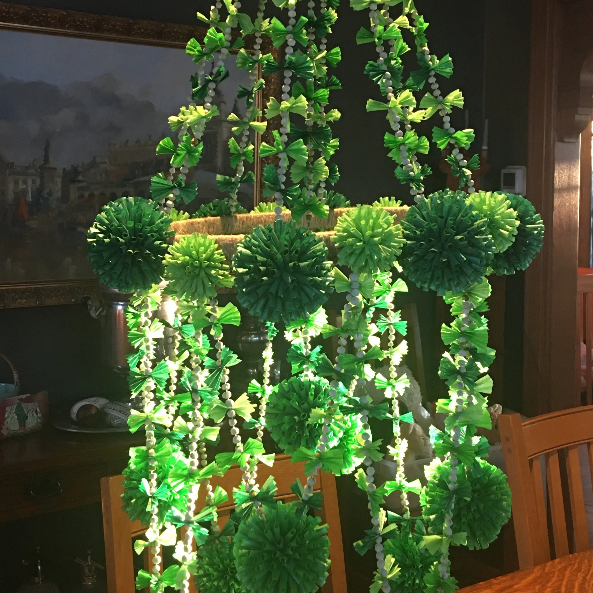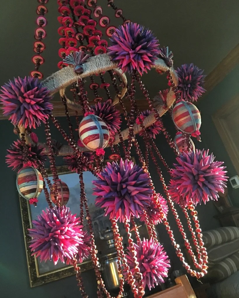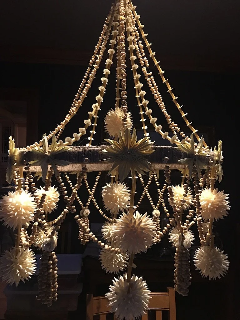 Polish mobiles were created from straw, paper, yarn, dried peas and beans, feathers and decorated eggshells. The literal translation of Pajak is spider. These elaborate handmade chandeliers hung in the center of the “Biale Izbe” - the white room’s ceiling, over the dining room table or Holy Corner. They would gently move or spin- suggesting that a spirit or ancestor was present. This place was a place of prayer where the soul was strengthened and renewed.